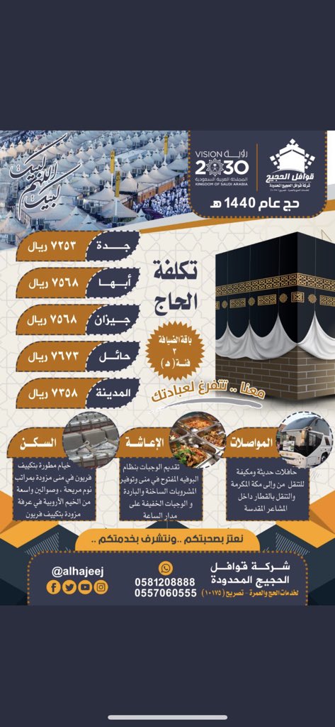 حمله قوافل الحجيج حملة رائعة وخدمات ممتازه والمتعاونات بالقسم النسائي رب يجزاهم الجنه اخلاق وادب وتوفير لاي طلب يُطلب منهم مالنا الا الدعاء لهم الله يجزاهم كل خير عنا ويعطيهم حتى يرضيهم