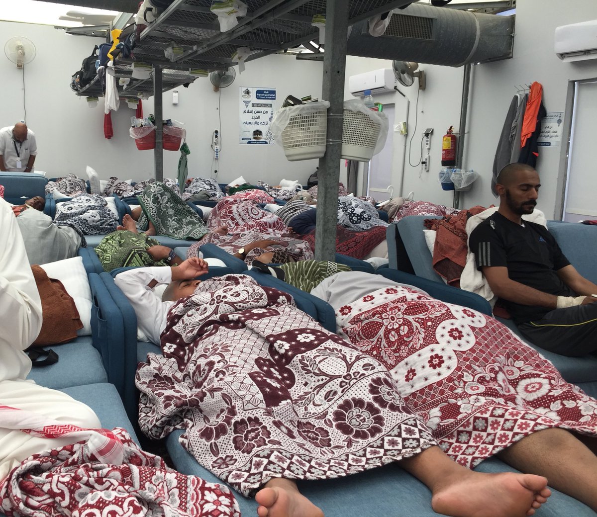 حملة قوافل الحجيج من زين دورات المياه او من كبر المكان او الاكل بالممرات حتى النوم ماحصلنا زين الناس من الزحمه في الخيمة١٠٠ حاج بالخيمه ! او من زين الباصات قديمه ولاتكييف زين الناس